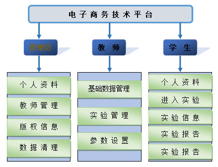 電子商務(wu)技(ji)術平臺分(fen)為管(guan)理(li)(li)員(yuan)、教(jiao)師和學(xue)(xue)生三個角色,每個角色都有(you)自己特有(you)的(de)功能(neng)。電子商務(wu)技(ji)術平臺包括了數(shu)據管(guan)理(li)(li)、WEB服(fu)(fu)務(wu)器安(an)裝與配置、業務(wu)流程分(fen)析設計(ji)、局域網(wang)搭建、客戶與服(fu)(fu)務(wu)端(duan)應(ying)用開發(fa)、網(wang)站構架設計(ji)、Web Service應(ying)用 、數(shu)據建模、B2B平臺會員(yuan)系統設計(ji)和網(wang)站性能(neng)分(fen)析十(shi)個實驗課程。讓(rang)學(xue)(xue)生通過(guo)實驗的(de)形式(shi)來鞏固(gu)知(zhi)識(shi)(shi)、理(li)(li)解知(zhi)識(shi)(shi)和綜合運用知(zhi)識(shi)(shi),教(jiao)師也(ye)可以擺(bai)脫傳(chuan)統的(de)教(jiao)學(xue)(xue)方(fang)(fang)(fang)法,把枯(ku)燥(zao)的(de)知(zhi)識(shi)(shi)同實踐相結合,還可以通過(guo)學(xue)(xue)生的(de)操作對學(xue)(xue)生的(de)知(zhi)識(shi)(shi)能(neng)力進行(xing)考評,并可以此為依據調(diao)整教(jiao)學(xue)(xue)方(fang)(fang)(fang)式(shi)方(fang)(fang)(fang)法。