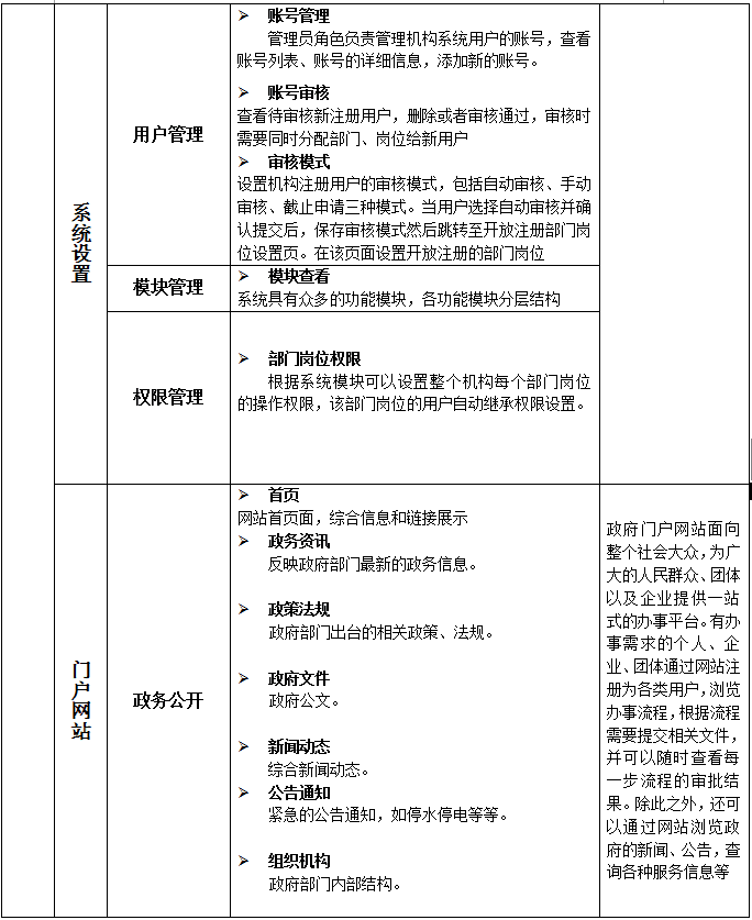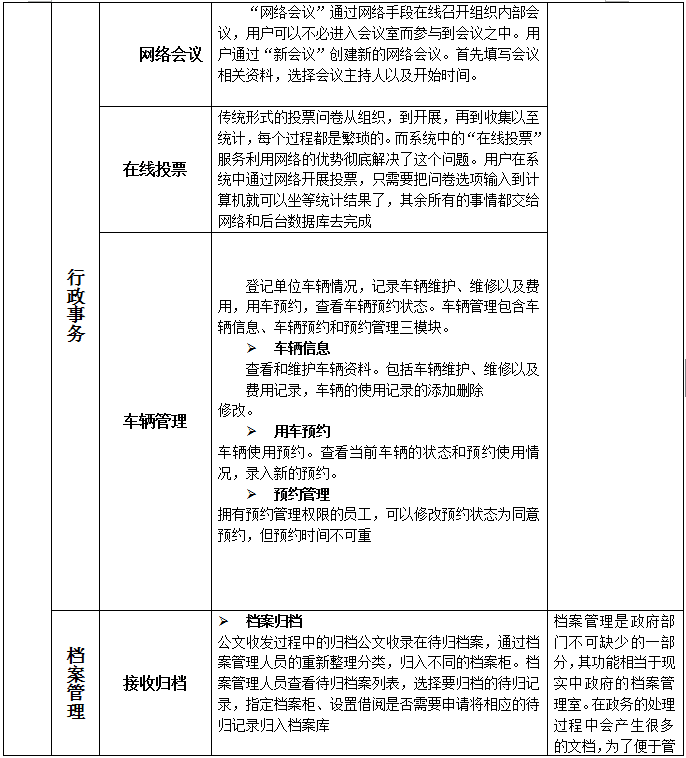 首頁、政(zheng)務資(zi)訊(xun)(xun)、政(zheng)策法規(gui)、政(zheng)府文(wen)件、新(xin)聞動(dong)態、公(gong)告(gao)通知、組(zu)(zu)織機(ji)構、服(fu)務導(dao)航、信息查(cha)詢、在(zai)線辦(ban)(ban)理(li)(li)(li)(在(zai)線辦(ban)(ban)事(shi)流程(cheng)(cheng)維護、在(zai)線辦(ban)(ban)事(shi)接納)、在(zai)線咨詢、領導(dao)信箱、投(tou)訴(su)舉報、熱點調查(cha)、政(zheng)務論壇 學生端(duan)后臺(tai):通訊(xun)(xun)錄、日程(cheng)(cheng)安排、便箋、單位工作(zuo)計劃、個人工作(zuo)計劃、發文(wen)管(guan)(guan)(guan)理(li)(li)(li)、收(shou)文(wen)管(guan)(guan)(guan)理(li)(li)(li)、遠程(cheng)(cheng)收(shou)發、呈批管(guan)(guan)(guan)理(li)(li)(li)、公(gong)文(wen)設(she)置、網絡會議、在(zai)線投(tou)票、車(che)輛(liang)管(guan)(guan)(guan)理(li)(li)(li)、接收(shou)歸(gui)檔、管(guan)(guan)(guan)理(li)(li)(li)檔案、檔案借閱、組(zu)(zu)織結構管(guan)(guan)(guan)理(li)(li)(li)、員工管(guan)(guan)(guan)理(li)(li)(li)、考勤管(guan)(guan)(guan)理(li)(li)(li)、用戶(hu)管(guan)(guan)(guan)理(li)(li)(li)、模塊管(guan)(guan)(guan)理(li)(li)(li)、權限管(guan)(guan)(guan)理(li)(li)(li)