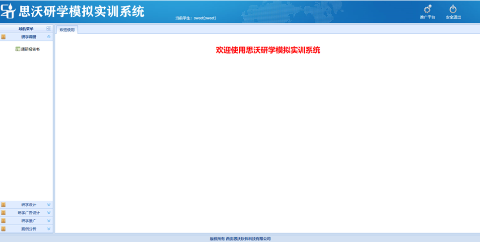 思沃研(yan)(yan)(yan)(yan)學(xue)(xue)(xue)(xue)模(mo)擬實訓系(xi)統分為(wei)管理員,教(jiao)師(shi),學(xue)(xue)(xue)(xue)生三種角色,功能包(bao)括推廣(guang)平臺(tai)、首頁,知(zhi)識(shi)庫,研(yan)(yan)(yan)(yan)學(xue)(xue)(xue)(xue)推廣(guang),圖文結(jie)合廣(guang)告,媒體(ti)推送(song)廣(guang)告,研(yan)(yan)(yan)(yan)學(xue)(xue)(xue)(xue)調研(yan)(yan)(yan)(yan),研(yan)(yan)(yan)(yan)學(xue)(xue)(xue)(xue)設(she)計等(deng)(deng)(deng)。學(xue)(xue)(xue)(xue)生通(tong)過模(mo)擬實訓體(ti)驗從研(yan)(yan)(yan)(yan)學(xue)(xue)(xue)(xue)內容調研(yan)(yan)(yan)(yan)、研(yan)(yan)(yan)(yan)學(xue)(xue)(xue)(xue)路(lu)線(xian)(xian)設(she)計、研(yan)(yan)(yan)(yan)學(xue)(xue)(xue)(xue)核心(xin)價值發掘、研(yan)(yan)(yan)(yan)學(xue)(xue)(xue)(xue)媒體(ti)網絡推廣(guang)等(deng)(deng)(deng)一系(xi)列工作內容。 研(yan)(yan)(yan)(yan)學(xue)(xue)(xue)(xue)軟件包(bao)含案例分析,點評,研(yan)(yan)(yan)(yan)學(xue)(xue)(xue)(xue)線(xian)(xian)路(lu)設(she)計,團隊類(lei)型(xing),機(ji)型(xing),小交(jiao)通(tong)標準,出(chu)入境口(kou)岸,匯(hui)率維(wei)護(hu)(hu),酒店類(lei)型(xing),研(yan)(yan)(yan)(yan)學(xue)(xue)(xue)(xue)類(lei)型(xing)知(zhi)識(shi)庫類(lei)型(xing),案例類(lei)型(xing),航(hang)空公司,線(xian)(xian)路(lu)區(qu)域,團隊等(deng)(deng)(deng)級,住(zhu)宿標準,大(da)交(jiao)通(tong)標準,門票(piao)標準,餐飲(yin)標準,導游證類(lei)別,酒店等(deng)(deng)(deng)級,客(ke)(ke)戶行業分類(lei),客(ke)(ke)戶等(deng)(deng)(deng)級分類(lei),客(ke)(ke)戶關系(xi)深(shen)度,地接(jie)(jie)車等(deng)(deng)(deng)級,客(ke)(ke)戶接(jie)(jie)受程度,國家維(wei)護(hu)(hu),省份維(wei)護(hu)(hu),城市(shi)維(wei)護(hu)(hu),景(jing)點類(lei)型(xing),學(xue)(xue)(xue)(xue)生可以進行系(xi)統的模(mo)擬學(xue)(xue)(xue)(xue)習(xi)。