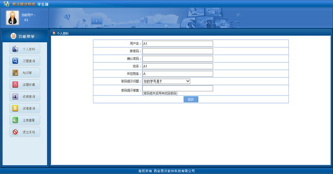 思沃考試(shi)系統是基(ji)于B/S模式架構的一款通用考試(shi)系統,滿足學校各種形式的考試(shi)、競(jing)賽(sai)、練習,完全實(shi)現了(le)考試(shi)工作(zuo)的網絡(luo)化、無(wu)紙化、自動(dong)化,極大的減輕了(le)教師的工作(zuo)量,同時也大大降(jiang)低了(le)閱(yue)卷的錯(cuo)誤率。