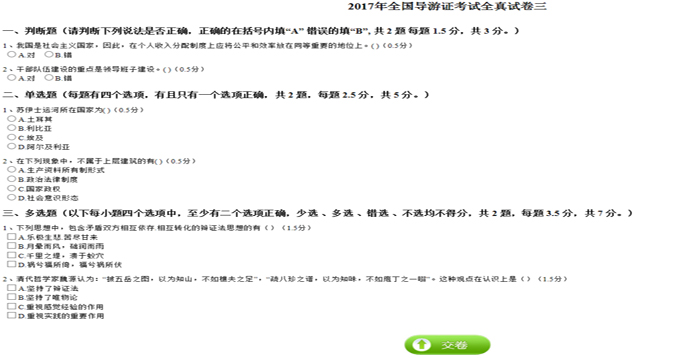 提供對試卷存在的客觀題(如判斷題、單選題、多選題等),系統(tong)自(zi)動評分。