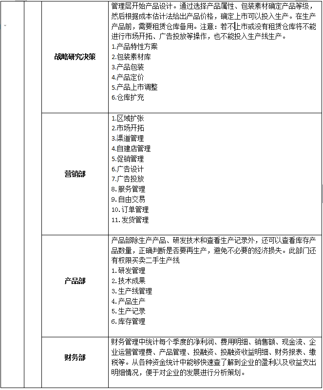 5、系統具有(you)自動計(ji)分和(he)手動評分功能。自動計(ji)分以(yi)各方面排(pai)名(ming)的形(xing)式,包括資金排(pai)名(ming)、銷售(shou)排(pai)名(ming)、知名(ming)度(du)排(pai)名(ming)、利(li)潤排(pai)名(ming)、投資收(shou)益排(pai)名(ming)、廣告設(she)計(ji)排(pai)名(ming)、市場(chang)占(zhan)有(you)率排(pai)名(ming)、美譽(yu)度(du)排(pai)名(ming)、投融資收(shou)益排(pai)名(ming)、累(lei)計(ji)繳稅排(pai)名(ming)、綜合(he)排(pai)名(ming)等(deng)。教師可(ke)以(yi)批閱學生所提交的計(ji)劃書、廣告設(she)計(ji)、市場(chang)調查分析(xi)、公司制(zhi)度(du)等(deng)。