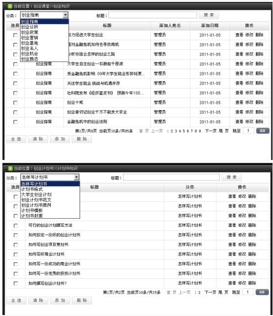 2、包含創(chuang)(chuang)(chuang)業(ye)理論(lun)知(zhi)(zhi)識的學習和創(chuang)(chuang)(chuang)業(ye)實(shi)戰訓(xun)練。創(chuang)(chuang)(chuang)業(ye)理論(lun)知(zhi)(zhi)識包括測(ce)評(ping)系統(tong)、創(chuang)(chuang)(chuang)業(ye)課(ke)堂、創(chuang)(chuang)(chuang)業(ye)講談、創(chuang)(chuang)(chuang)業(ye)命題(ti)、創(chuang)(chuang)(chuang)業(ye)計劃(hua)書、法規知(zhi)(zhi)識、網上創(chuang)(chuang)(chuang)業(ye)、創(chuang)(chuang)(chuang)業(ye)準備(bei)、創(chuang)(chuang)(chuang)業(ye)論(lun)壇。創(chuang)(chuang)(chuang)業(ye)實(shi)戰訓(xun)練包含選擇行(xing)業(ye)、注冊公(gong)司、人員(yuan)招聘、產品戰略策劃(hua)、產品生產、渠道(dao)銷(xiao)售、促銷(xiao)、備(bei)貨運送(song)等內(nei)容。