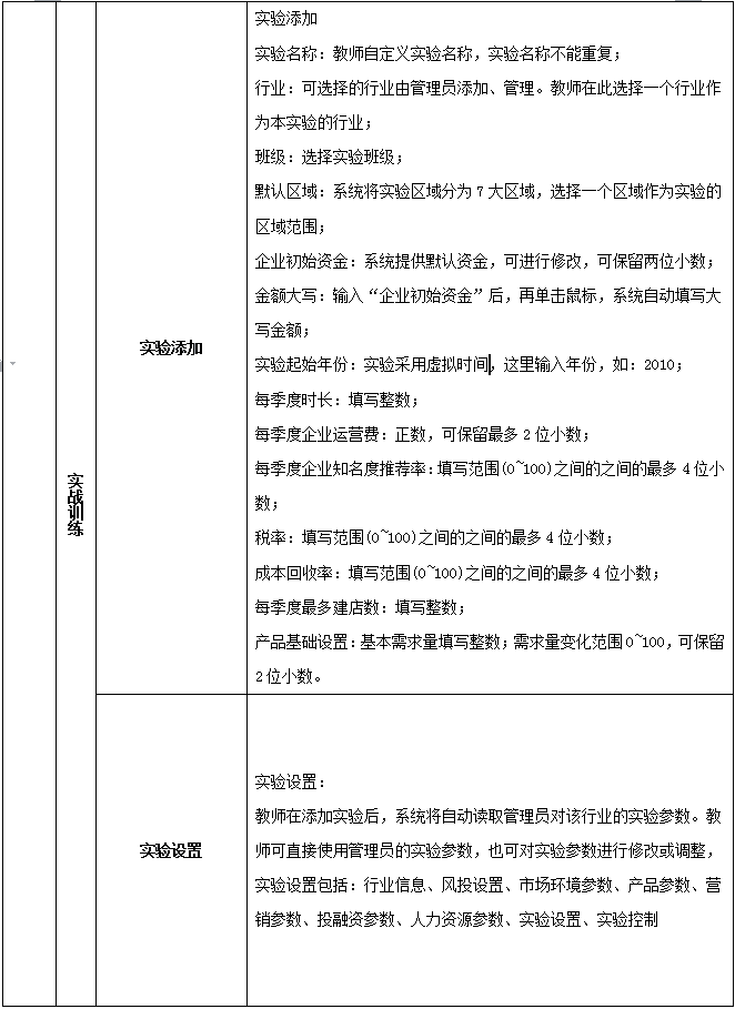 4、企(qi)業(ye)(ye)投(tou)融(rong)資(zi)(zi)管理:系統必須含有投(tou)融(rong)資(zi)(zi)模(mo)塊(kuai),了解操作企(qi)業(ye)(ye)的基本投(tou)資(zi)(zi)和融(rong)資(zi)(zi)手段,模(mo)塊(kuai)包括:銀行存款、銀行貸款、企(qi)業(ye)(ye)間借(jie)貸、民(min)間借(jie)貸、私幕股權。另(ling)外還含有風險(xian)投(tou)資(zi)(zi)模(mo)塊(kuai),在審核計劃書(shu)后(hou)(hou)做出評價和評分,由教師設置(zhi)是否給予風險(xian)投(tou)資(zi)(zi),以及金額。設置(zhi)后(hou)(hou)系統自動給相應企(qi)業(ye)(ye)發送反饋信息,接受(shou)并給予風投(tou)的企(qi)業(ye)(ye)前來簽訂風投(tou)協議領取風投(tou)資(zi)(zi)金