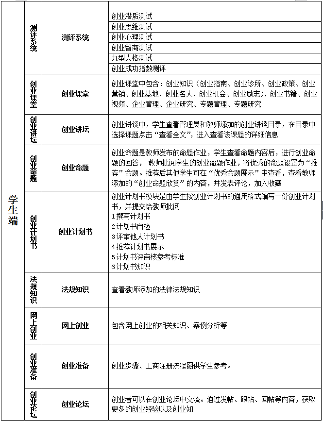用戶對象:本教學(xue)軟(ruan)件適用于各專業(ye)大學(xue)生創(chuang)業(ye)的(de)模擬(ni)實訓。