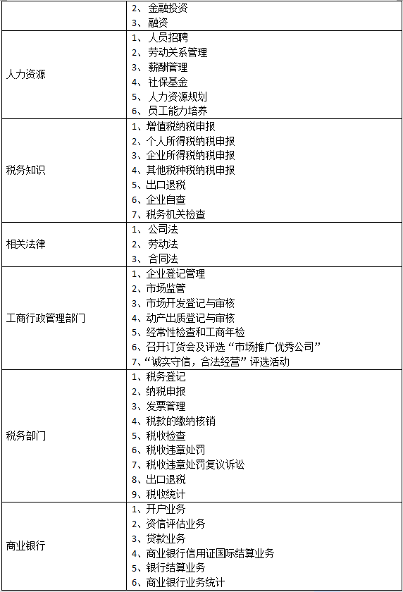B、含蓋專業廣泛:平臺實現以崗位替代(dai)專業的模式,有(you)企業管(guan)理(li)者、銷(xiao)售、采購、生(sheng)產、人(ren)力資源、財務(wu)人(ren)員、投融(rong)資、倉儲、外貿業務(wu)員、行政辦事人(ren)員等(deng)等(deng)幾十個崗位,融(rong)合的專業有(you)企業管(guan)理(li)、會計、工商管(guan)理(li)、物流、金融(rong)、國(guo)際(ji)貿易(yi)等(deng)多個專業。