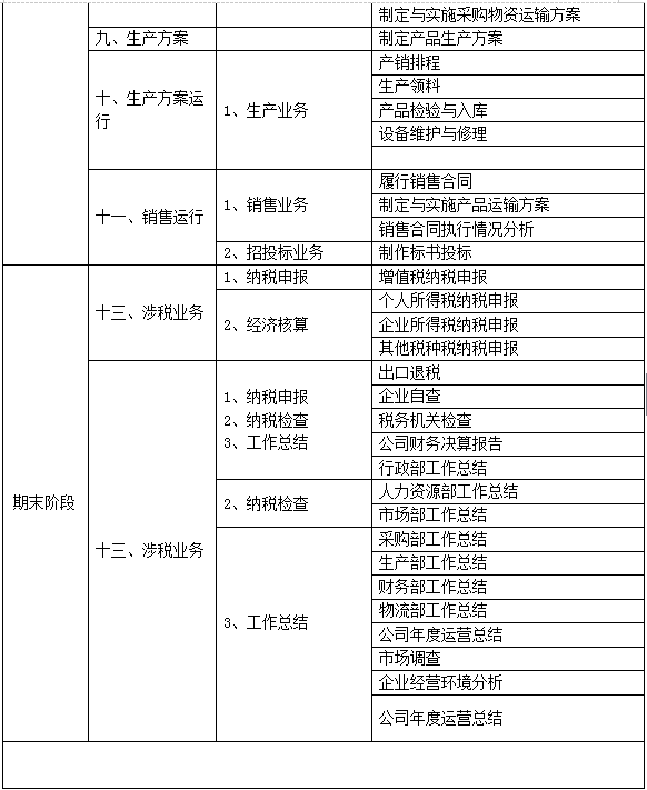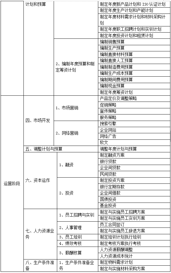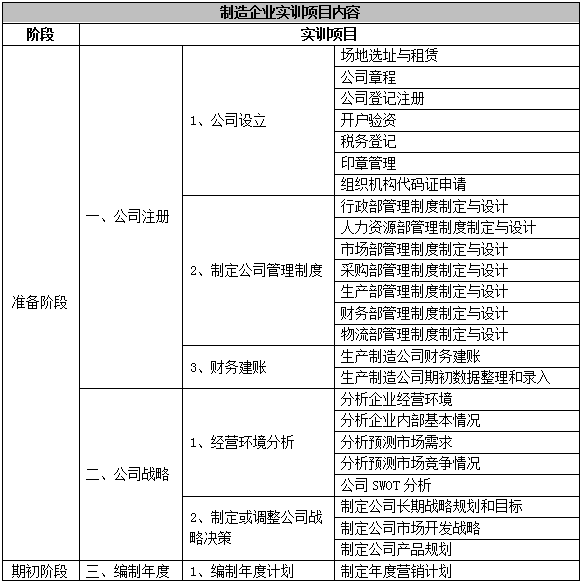 跨專業(ye)平(ping)臺主(zhu)要由搭(da)建(jian)平(ping)臺運行環境、制(zhi)造(zao)(zao)企業(ye)運營(ying)、行政業(ye)務和(he)金融業(ye)務等幾大部(bu)(bu)(bu)分組成。以現代(dai)(dai)制(zhi)造(zao)(zao)行業(ye)為(wei)藍本,設置總(zong)經理辦(ban)公室、銷(xiao)售部(bu)(bu)(bu)、生產部(bu)(bu)(bu)、采購部(bu)(bu)(bu)、倉(cang)儲部(bu)(bu)(bu)、外(wai)貿部(bu)(bu)(bu)、市(shi)場部(bu)(bu)(bu)、財務部(bu)(bu)(bu)、人(ren)才(cai)資(zi)源(yuan)部(bu)(bu)(bu)、企業(ye)投資(zi)融部(bu)(bu)(bu)等十大制(zhi)造(zao)(zao)企業(ye)職能(neng)部(bu)(bu)(bu)門(men)(men)(men);真實(shi)模擬(ni)行政辦(ban)事(shi)(shi)(shi)部(bu)(bu)(bu)門(men)(men)(men),提(ti)供工(gong)商(shang)(shang)局、稅務局、會計事(shi)(shi)(shi)務所(suo)、銀行、物流、保(bao)險(xian)公司、貸代(dai)(dai)公司等辦(ban)事(shi)(shi)(shi)場所(suo);系統虛擬(ni)扮演公安(an)局、質量與(yu)(yu)技(ji)術監督局、勞動與(yu)(yu)社(she)會保(bao)障局、原材料(liao)供應(ying)商(shang)(shang)、海關(guan)、商(shang)(shang)檢(jian)、外(wai)匯管理局、船公司等服(fu)務性(xing)部(bu)(bu)(bu)門(men)(men)(men)行業(ye)。攘(rang)括了與(yu)(yu)制(zhi)造(zao)(zao)行業(ye)有關(guan)的所(suo)有相關(guan)行政辦(ban)事(shi)(shi)(shi)部(bu)(bu)(bu)門(men)(men)(men)和(he)服(fu)務性(xing)行業(ye)。